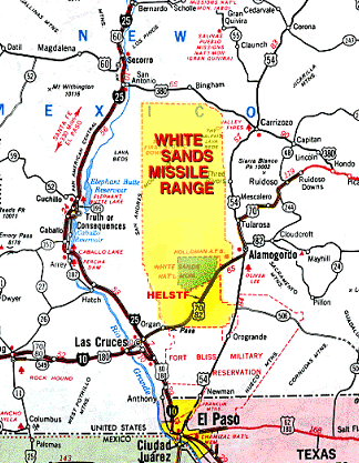 the US, occupying some 3200 square miles of southern New Mexico. Since 1945 the missile range has conducted more than 42,000 missile and rocket firings. Each year researchers at WSMR fire approximately 900 missiles for testing. It is the site of the first atomic bomb explosion code named Project Trinity – read about it on the National Park Service website.